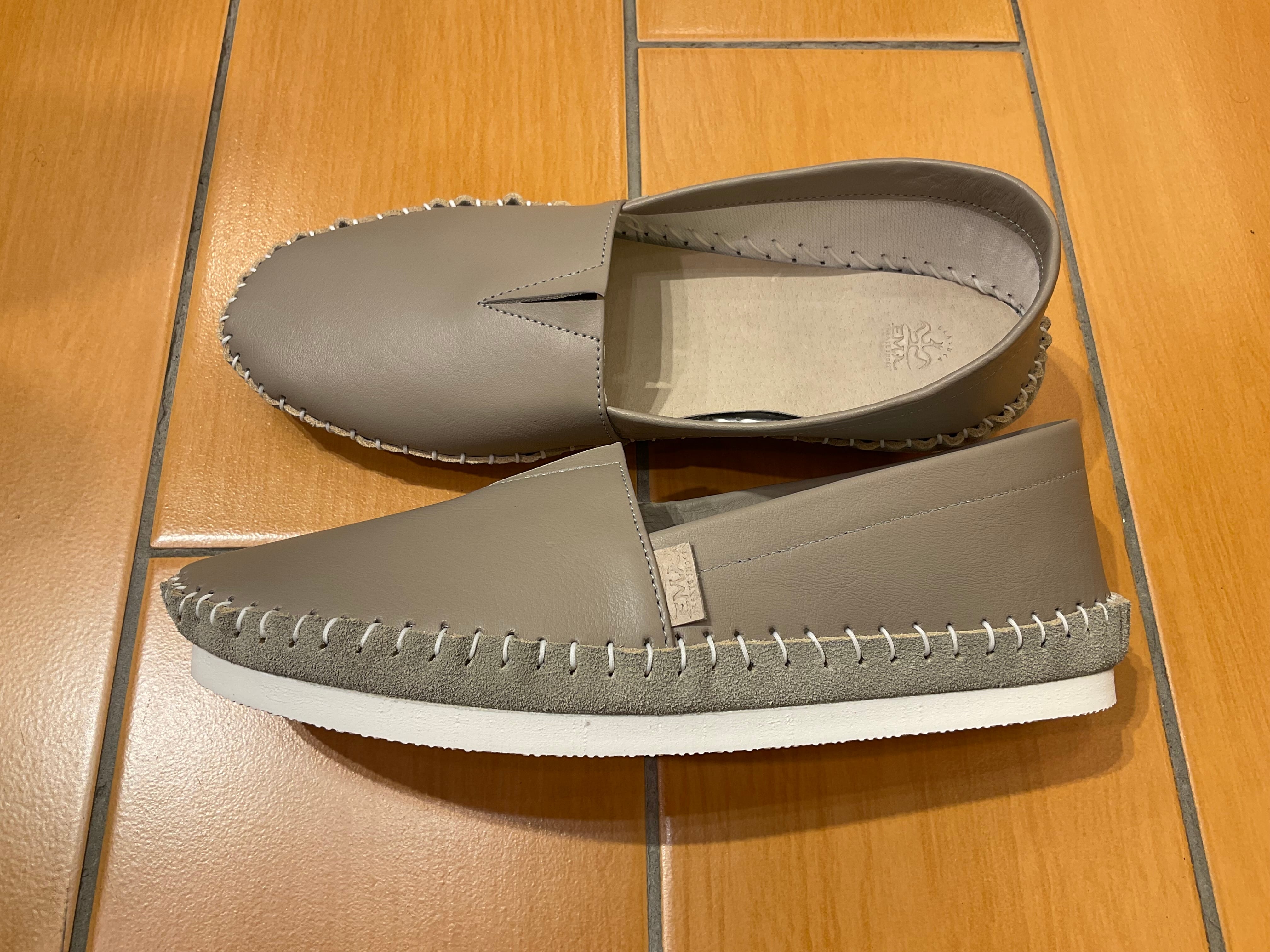 本革・軽量スリッポン|やわらかベージュグレーの手縫いレザーシューズ