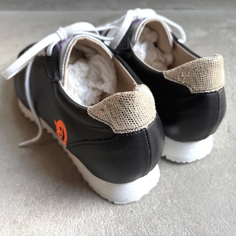 ハロウィン限定 カボチャ刺繍スニーカー|ブラックレザー×ホワイトソール ユニセックス ギフトにも