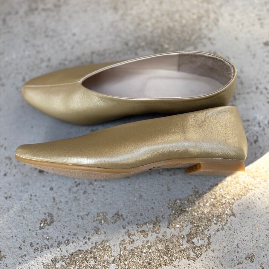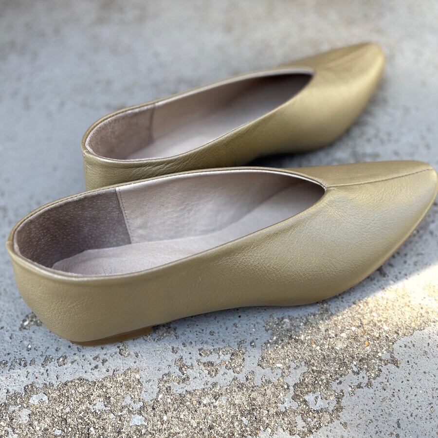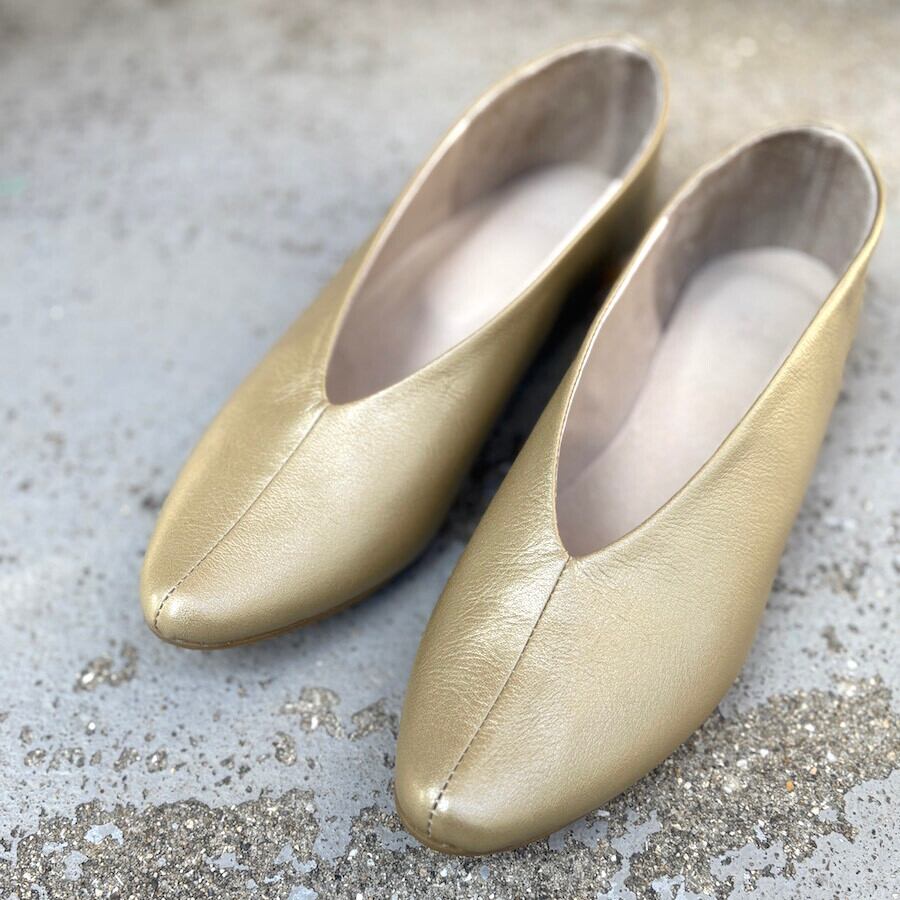 自然で優しい色合いのゴールドを使用した本革を使ったパンプスになります。