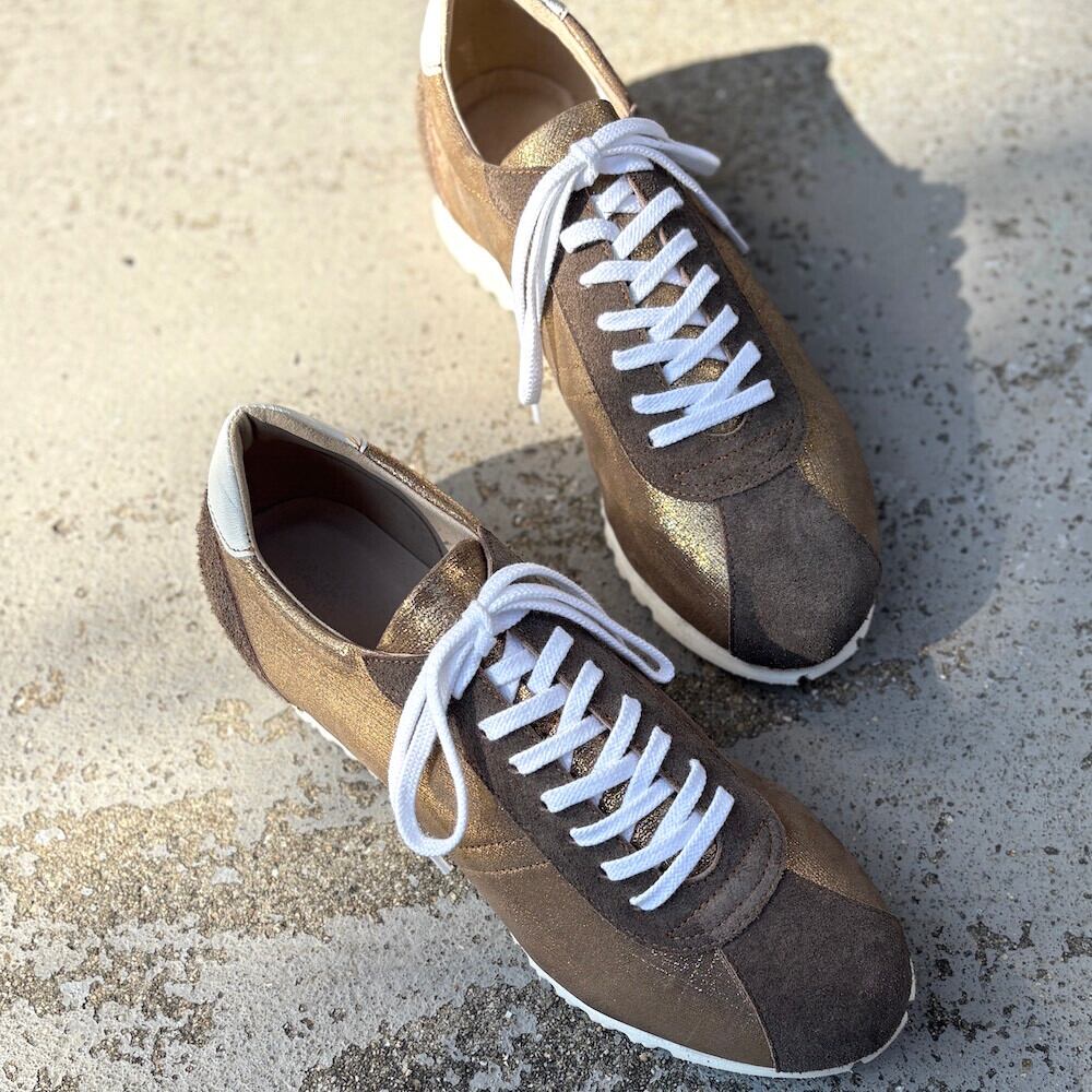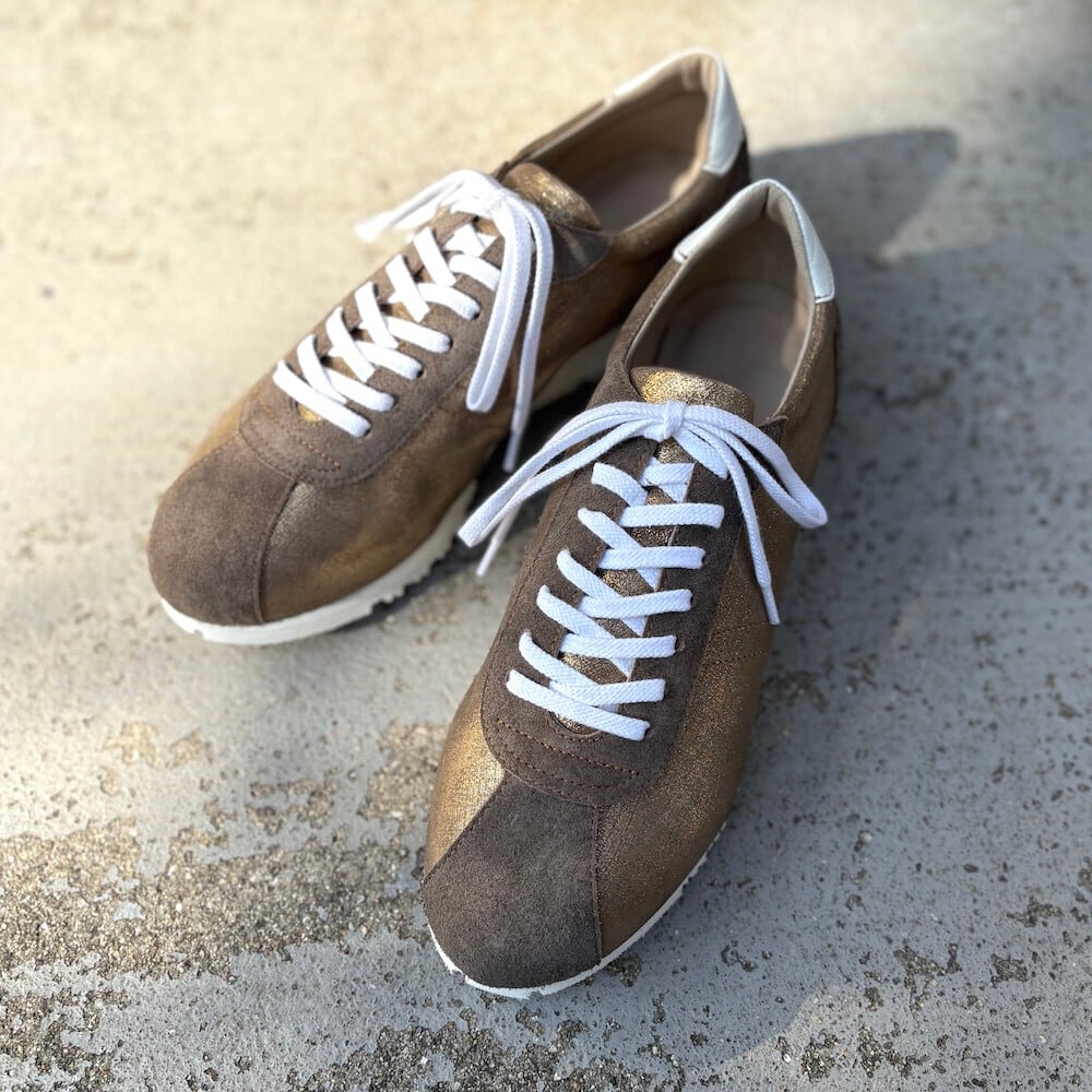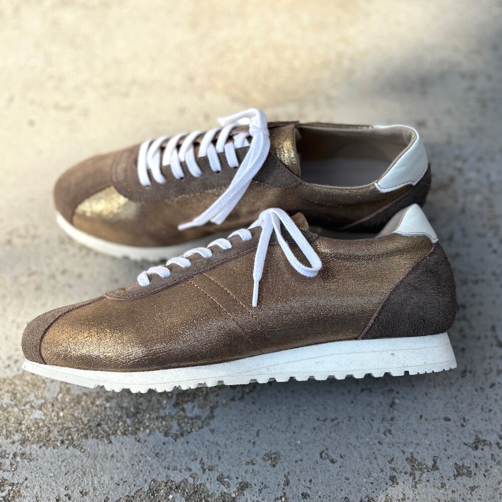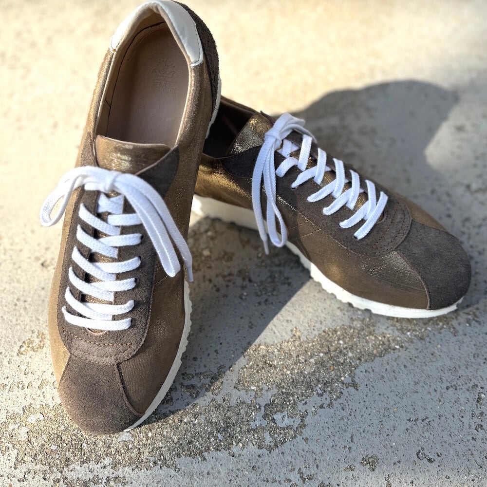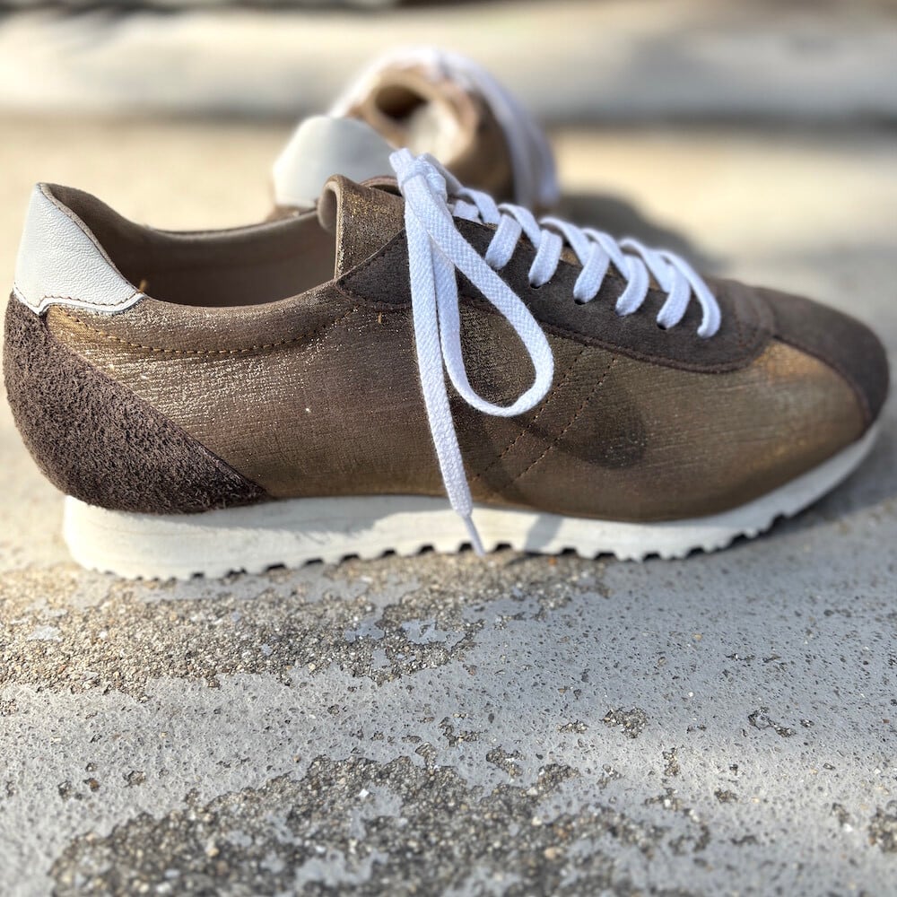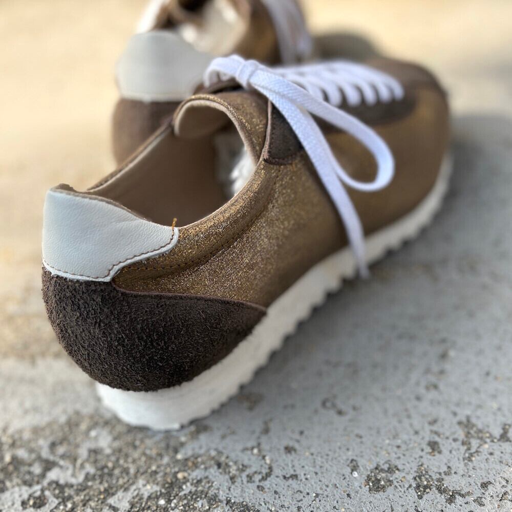 【軽やかにきらめく大人の春スニーカー】クラシックなデザインと本革の上質感!EMAのスニーカー/ブラウンラメ