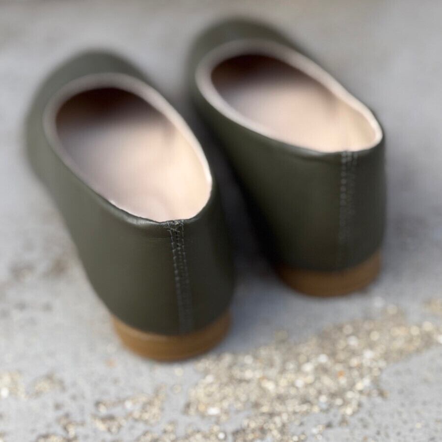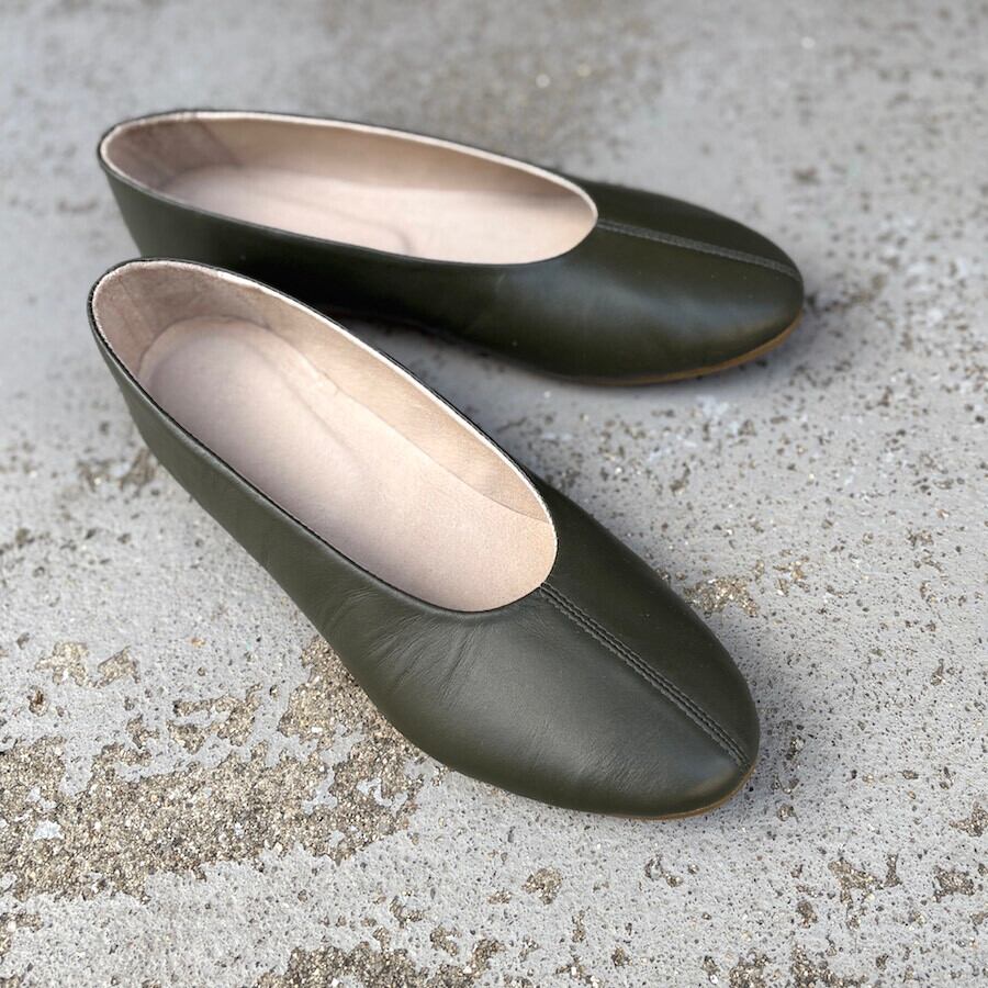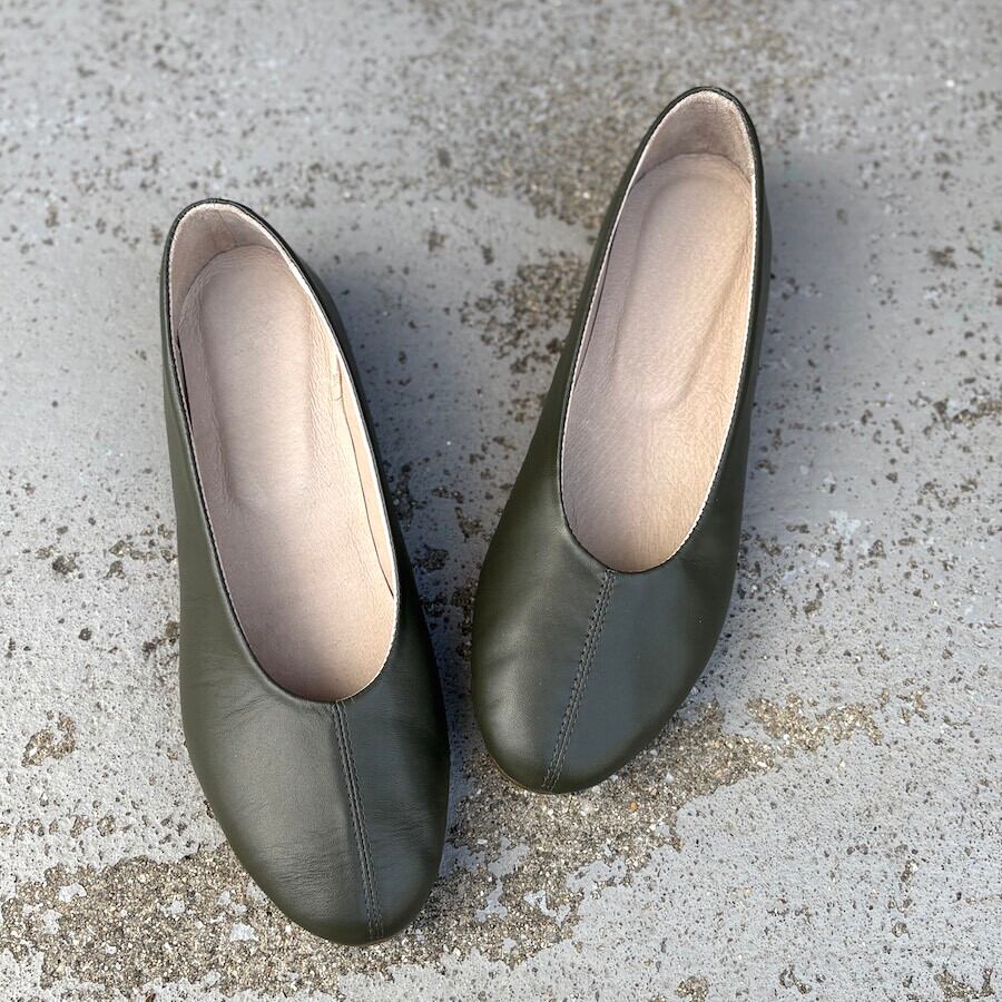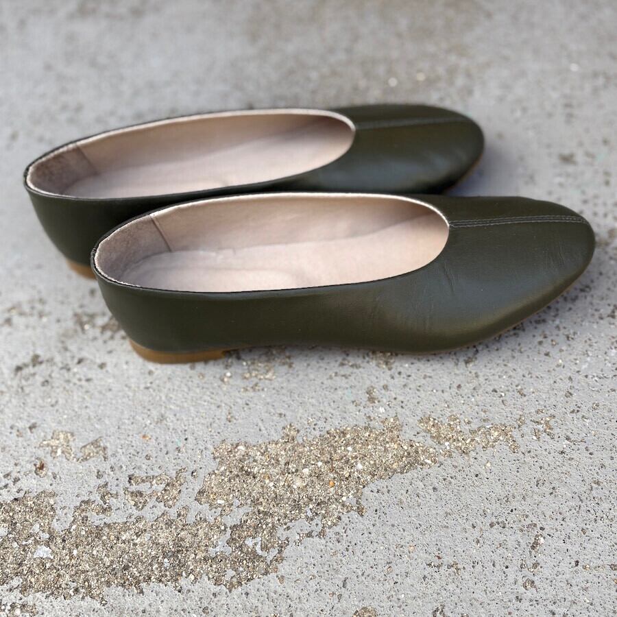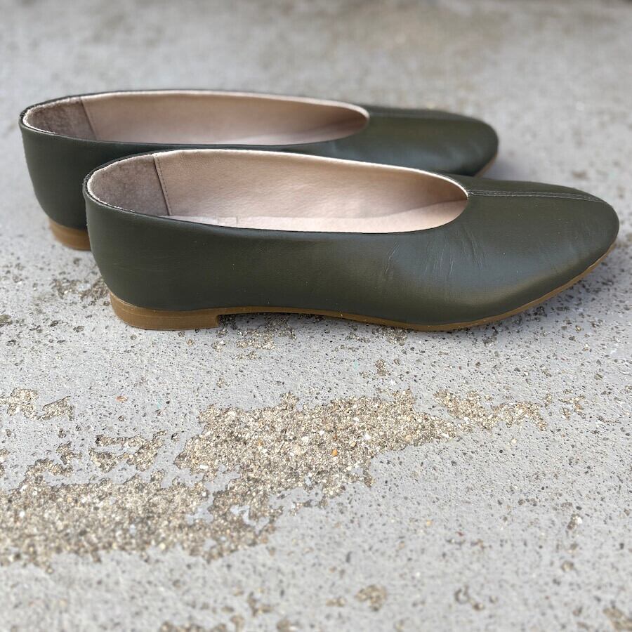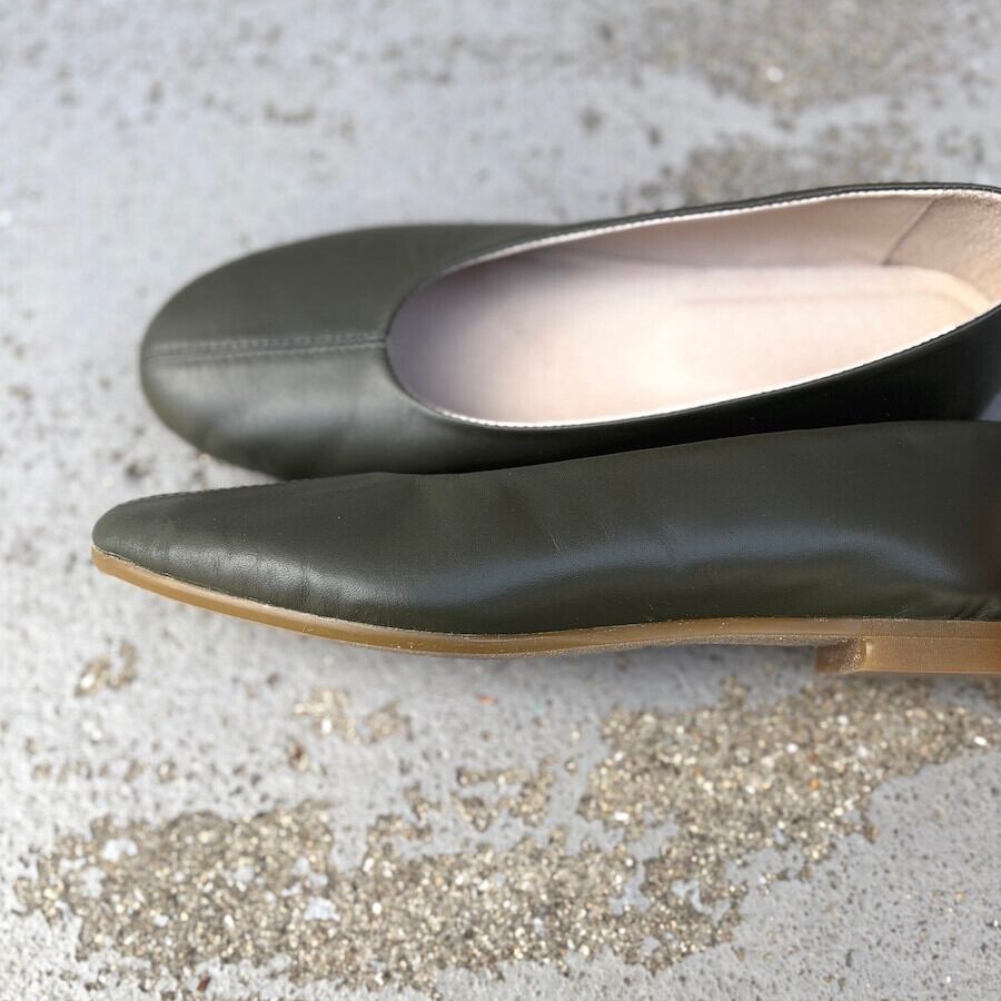 【新作】スモークカーキ/ラウンドフラットシューズ/本革ハンドメイド ❄︎made in Japan❄︎