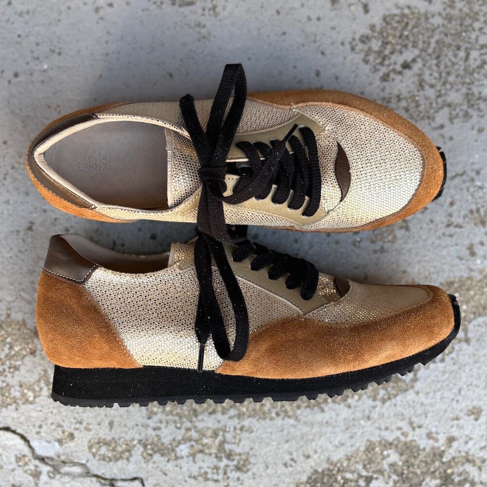 EMAクラフトスニーカー 本革 ゴールド×キャメル 大人カジュアル 限定カラー