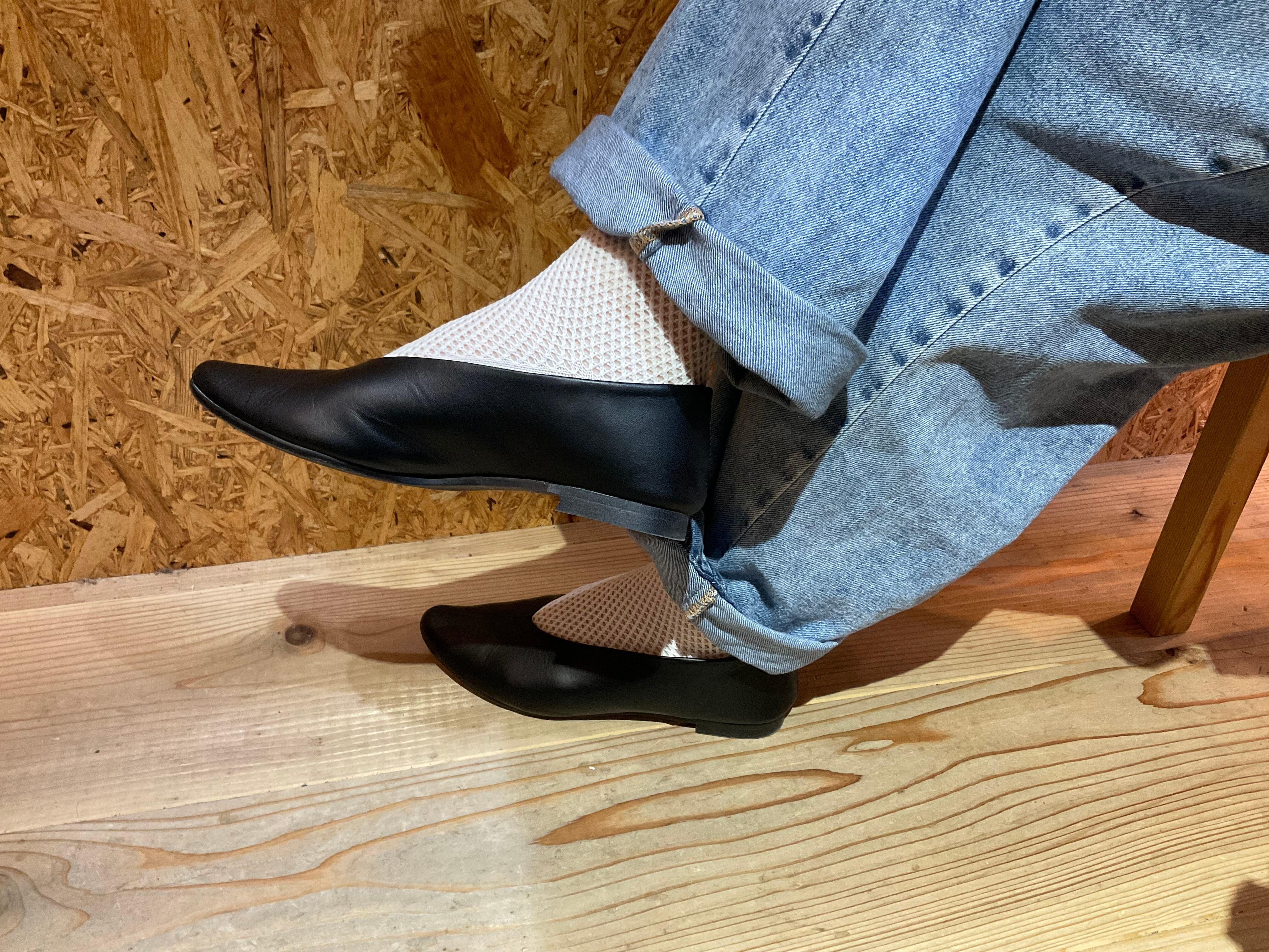 「夏のモノトーンコーデに映える、抜け感ある黒レザー。軽やかで通気性も◎“痛くない&疲れにくい”設計なので、通勤〜お出かけまで1日中快適です。」