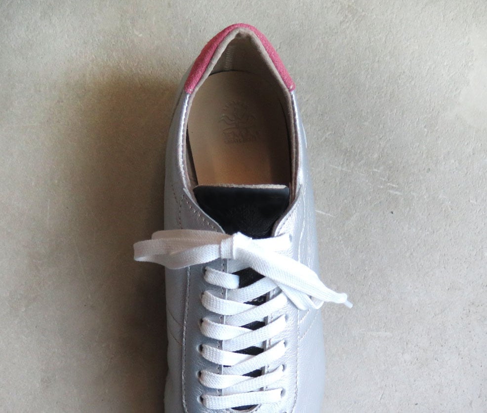 【完全受注生産】クラシックなデザインと本革の上質感!EMAのスニーカー/マットシルバー×ピンク×ブラック