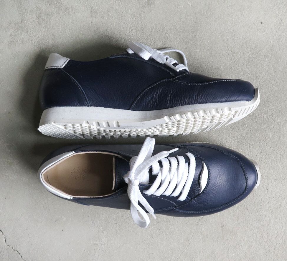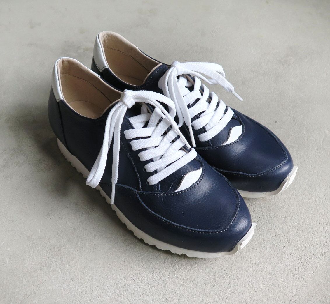 【人気の定番カラー!】スリムなのにゆったりな履き心地!本革大人ユニセックススニーカー/ネイビー×ホワイト