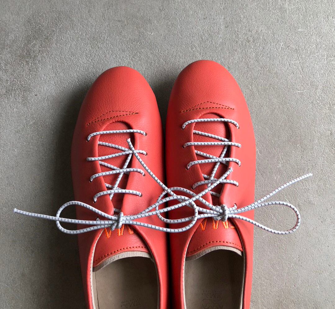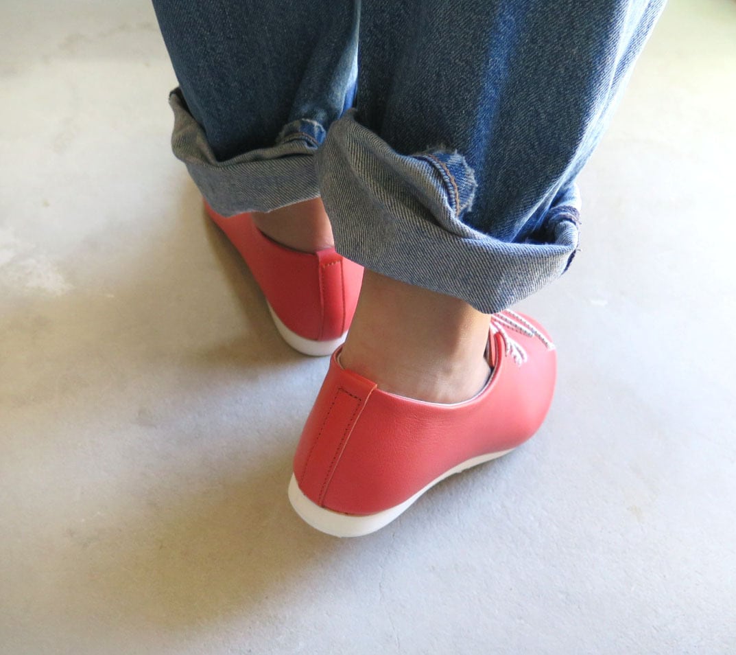 【ゴム紐で履きやすい!】一枚革で包み込むようなハンドメイドスニーカー/フラミンゴピンク
